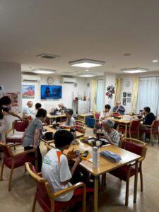 お食事タイムは持参のお弁当を入所者の皆様と共に食べて頂きました。