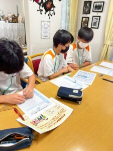 先週10/7(火)~の三日間、近隣の砧南中学校の生徒さん三名が職場体験で愛の家を訪れました。