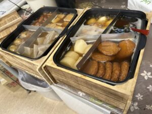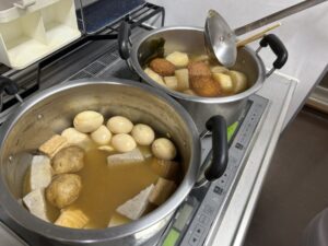 施設長とスタッフが力を合わせて前日から仕込み、熱々のおでんをご提供しました。