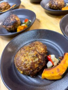 香ばしい香りが漂う焼きたてのハンバーグ。