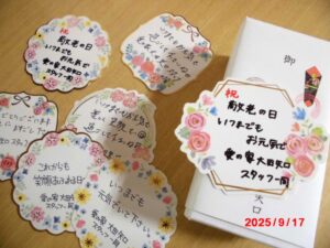 スタッフお手製のメッセージカードに皆さま喜ばれておりました。