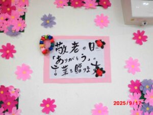 敬老の日の為に豪華な飾り付けをスタッフが作ってくれました。