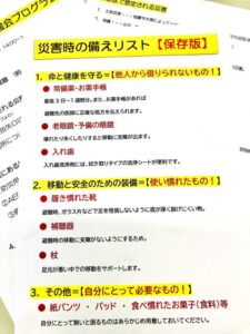 そして最後に「災害時の備えリスト(保存版)」を皆さんに説明しました。