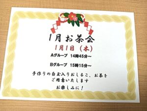 施設長がお正月のご挨拶を兼ねて見守る中、