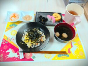「ちらし寿司」に「お雑煮風お吸い物」、