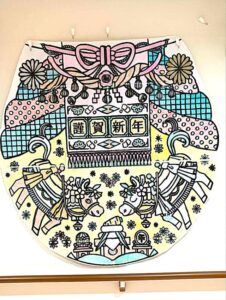 「ポップなお正月デザインの塗り絵」