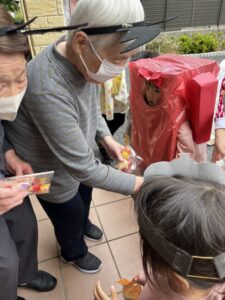 準備したお菓子を手渡し出来て入所者さんはとても嬉しそうです。