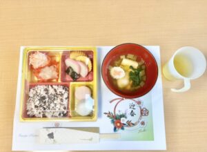 元旦にはきりたんぽを使ったお雑煮とおせち料理を食べていただきました。