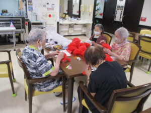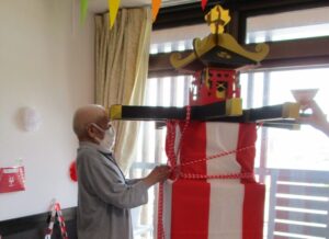 施設の飾りつけは数日前から入所者様が手伝ってくれました。
