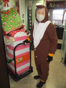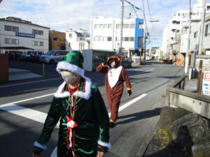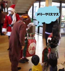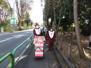 これから近くの保育園、幼稚園を訪ねてプレゼントを渡します