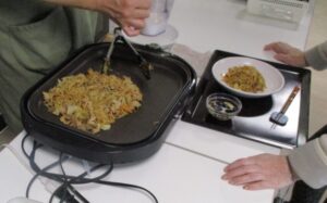 ホットプレートで調理し、熱々の状態で配膳しました。