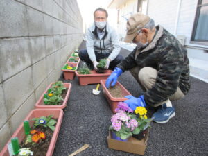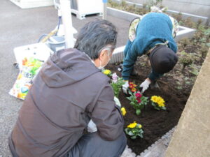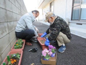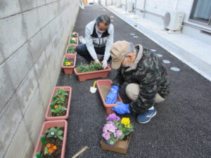 お花の植え替えをした様子を