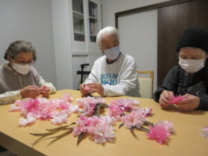 施設内もお花を飾りましょうと