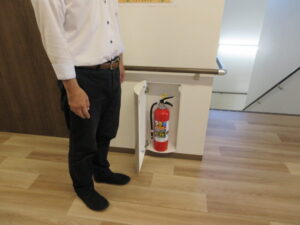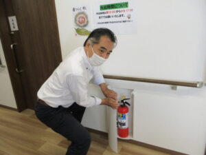 消防署の方たちが消防車両で来て下さり外での訓練です
