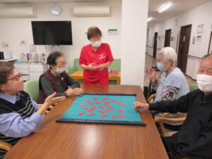 まずは絵合わせで、絵と何月の札かを覚えてもらいます