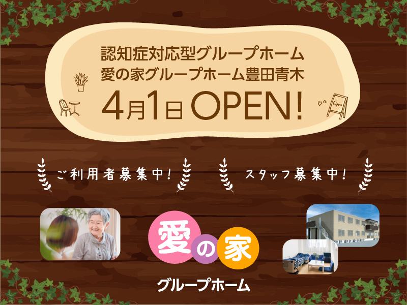 4月1日、豊田市青木町に「愛の家グループホーム」がオープンいたします。認知症になっても、住み慣れた地域で自分らしく。穏やかで「当たり前の日常」を真心を込めて支えます。